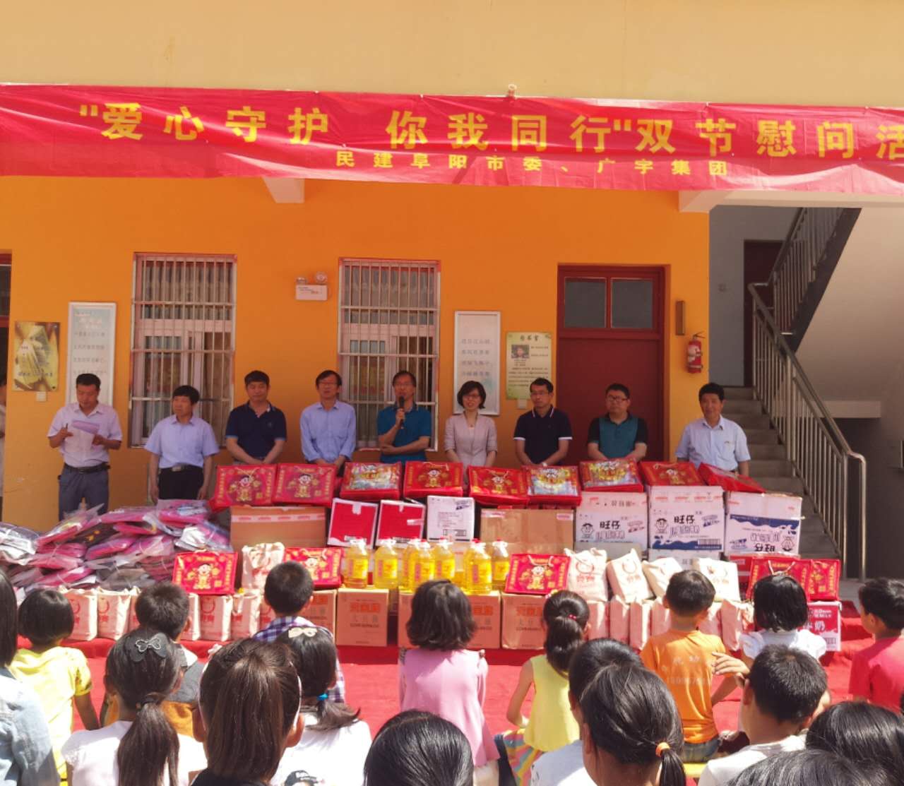 時(shí)值“端午”、“六·一”雙節(jié)前夕,在民建阜陽(yáng)市委吳永利主委,集團(tuán)董事長(zhǎng)張濤的帶領(lǐng)下,廣宇一行人又一次來到了“西湖鎮(zhèn)廣宇湯莊希望小學(xué)”,為同學(xué)及老師們獻(xiàn)上節(jié)日禮物。出席本次活動(dòng)的有潁州區(qū)紀(jì)蘭芳副區(qū)長(zhǎng)、教育局白莽局長(zhǎng)、西湖鎮(zhèn)有關(guān)領(lǐng)導(dǎo)。