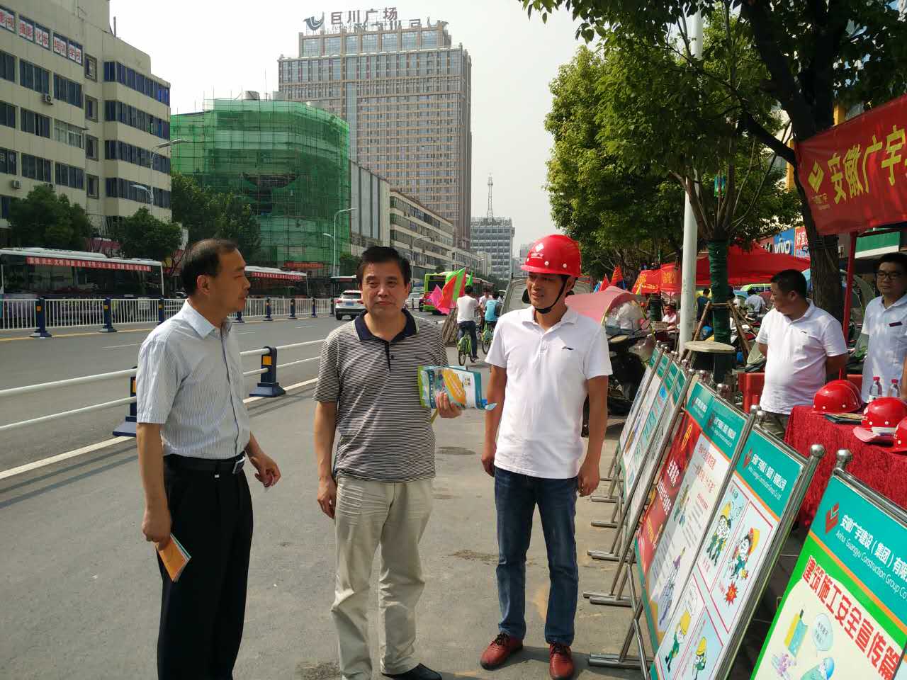 公司員工通過設(shè)立咨詢臺、發(fā)放宣傳手冊和資料等多種形式向過往群眾進行安全宣傳。我們員工結(jié)合生活實際,向過往群眾耐心地講解安全知識和宣傳安全意識,以期提高受眾的安全生產(chǎn)法制意識、責(zé)任意識、事故防范意識和自我保護意識,從而營造一個人人參與安全生產(chǎn),人人關(guān)心安全生產(chǎn)的良好生活環(huán)境。本次安全月宣貫活動中,阜陽市副市長王顯義、市安全監(jiān)督局局長李智、市建管局負(fù)責(zé)人鈕扣等同志先后前往慰問和指導(dǎo)工作。王顯義副市長要求施工企業(yè)一定要注意安全生產(chǎn),時刻把安全放在第一位,高處作業(yè)更要做好安全防護。